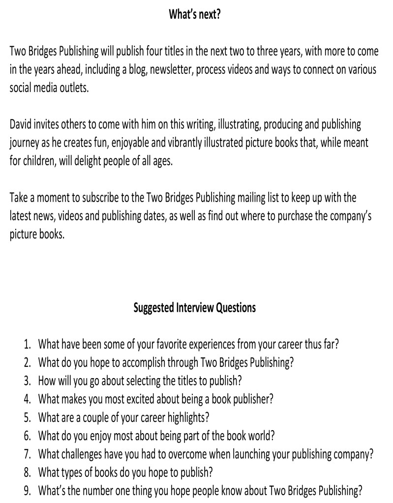 Want to know more about Two Bridges Publishing for your author visit, news article, book review, or podcast? Then download TBP’s Media Kit.